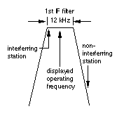 If a signal is "outside" the pass band of the 1st I.F. Filter it will never get to the noise gate. If however a signal is within the 12 KHz "window" of this filter it will get to the noise gate and get turned on & off by the gate. This re-modulates the signal you want with noise gate pulses. The presence of this other signal has essentially rendered your noise blanker useless and you might as well turn it off.