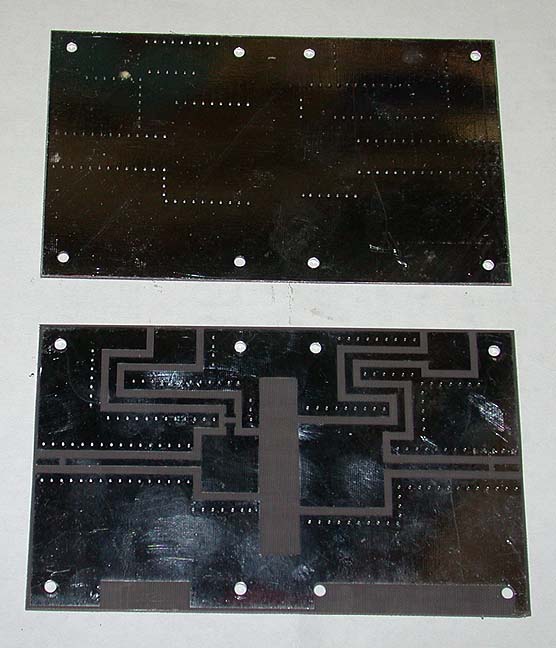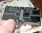 below: Taconic Er=2.55, 0.032 ptfe board, double sided copper, plated thru holes for vias (grounds)