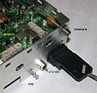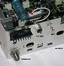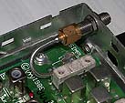 The +12 VDC connection is now applied through a feed-thru capacitor which was mounted on the rear panel as well. Both boards had to be removed from the radio to allow adequate clearance to punch the holes.