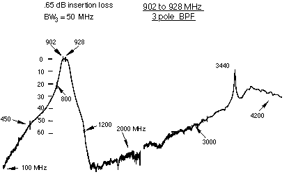 The following band pass filters are easily constructed and the network analyzer performance swept responses show you exactly what they will do.