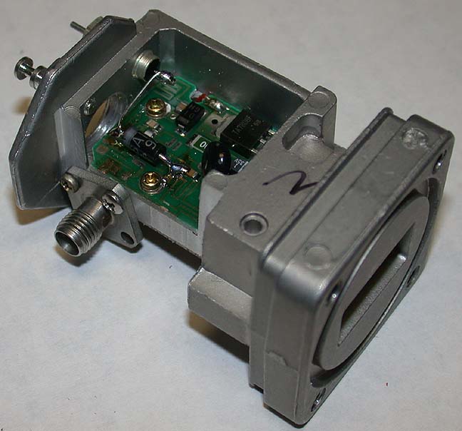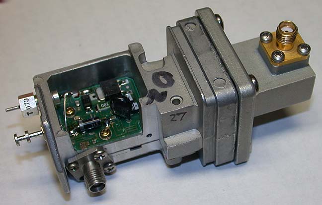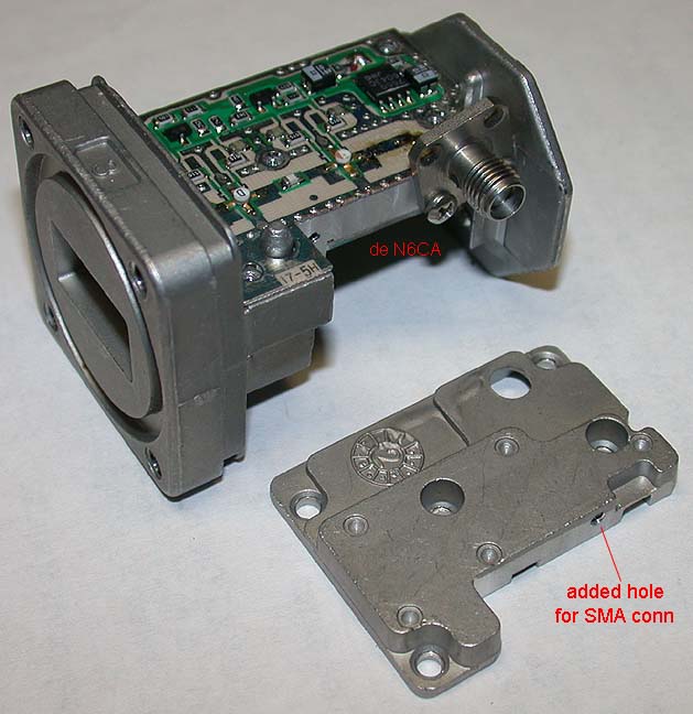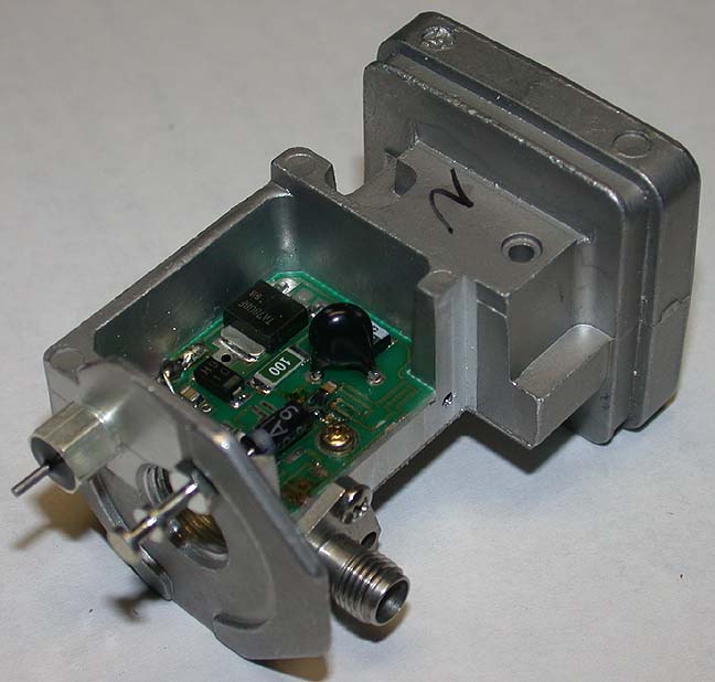 Virtually without any retuning these block converters will yield a 1.0 to 1.1 dB noise figure and about 27 dB of gain at 10368 MHz.. The only modifications are the removal of the DRO/mixer down converter assembly, the addition of an output connector and feed thru capacitor and jumpering over a 12 GHz band pass filter on the PC board. These mods can be implemented without any test equipment and unless you do something really dumb.......it will work........