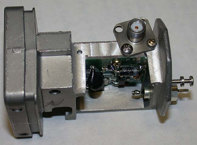 Thes critters use an 8 volt regulator for the GaAs FET supply pre-regulator. DC power is normally applied thru the F connector which was removed (that was fun)...use a big vise. A 7660 negative voltage generator bug makes the gate bias voltage.